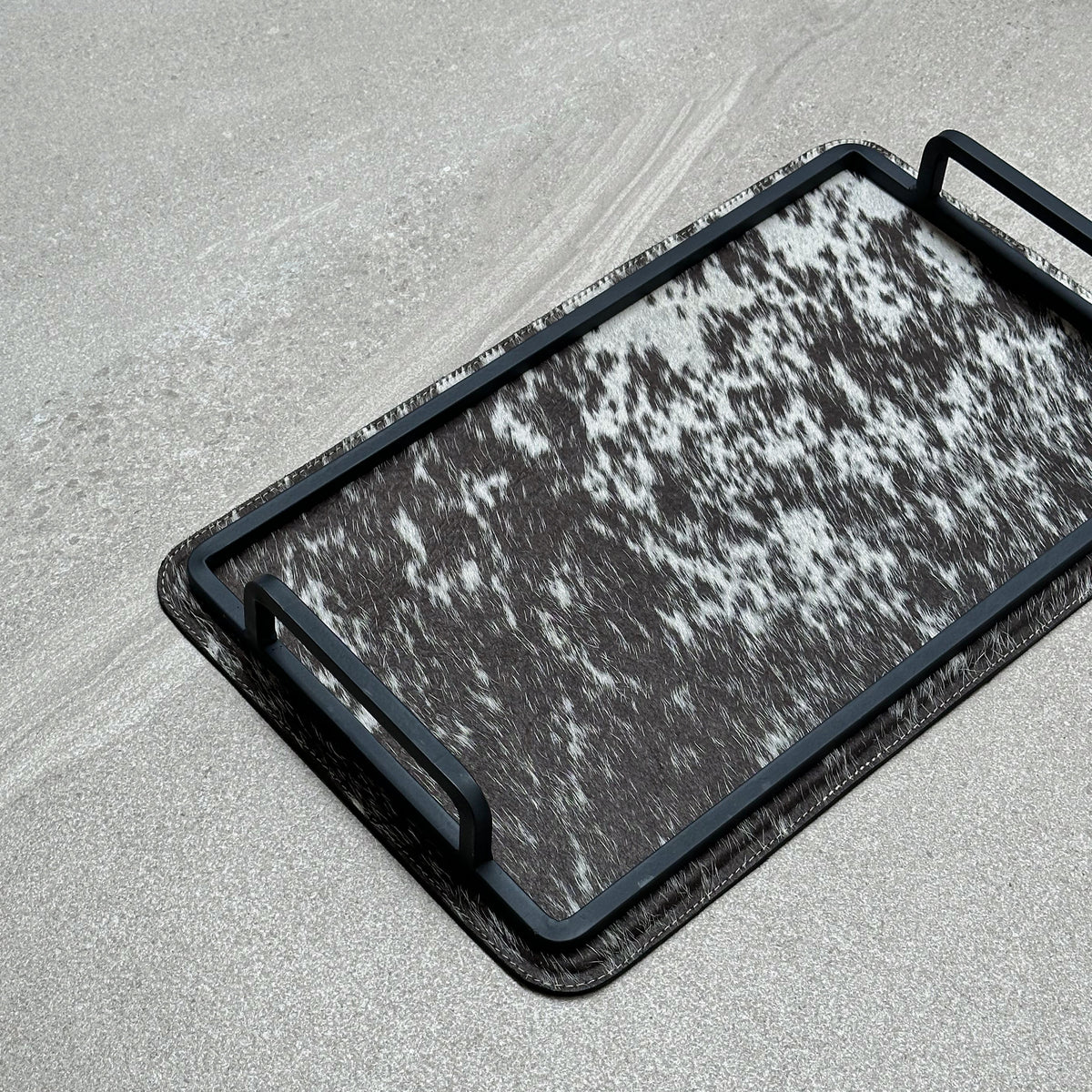 Las charolas chicas de piel con pelo son el toque ideal para cualquier rincón: una entrada, una mesa de centro o un tocador. Su diseño contemporáneo y textura natural aportan calidez y sofisticación, convirtiéndose en ese detalle funcional y decorativo que eleva cualquier espacio.