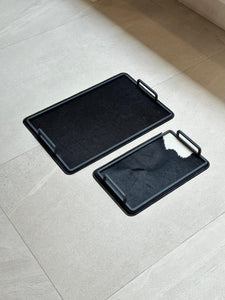 Set charolas piel con pelo - Negra con mancha blanca en charola chica