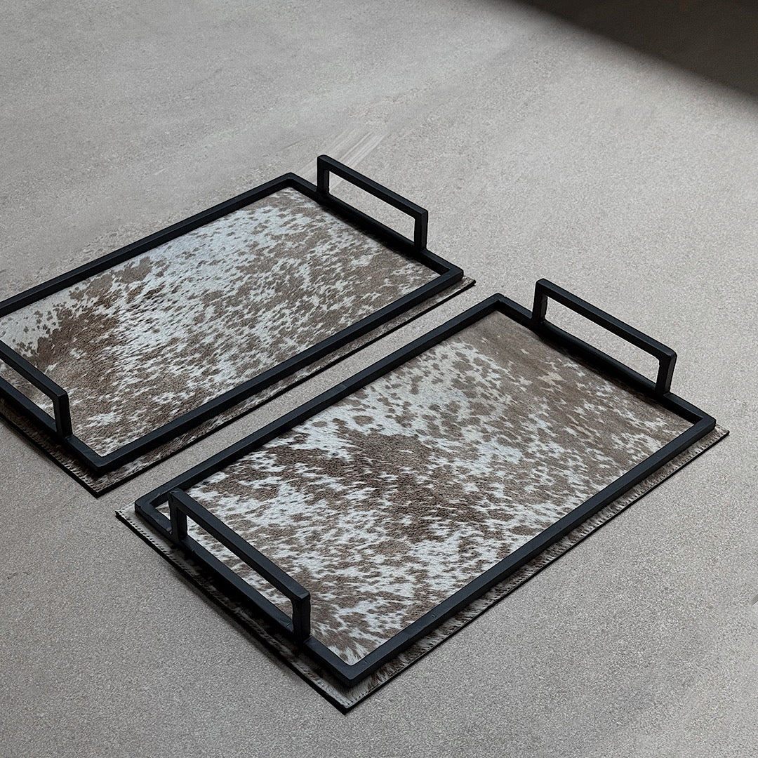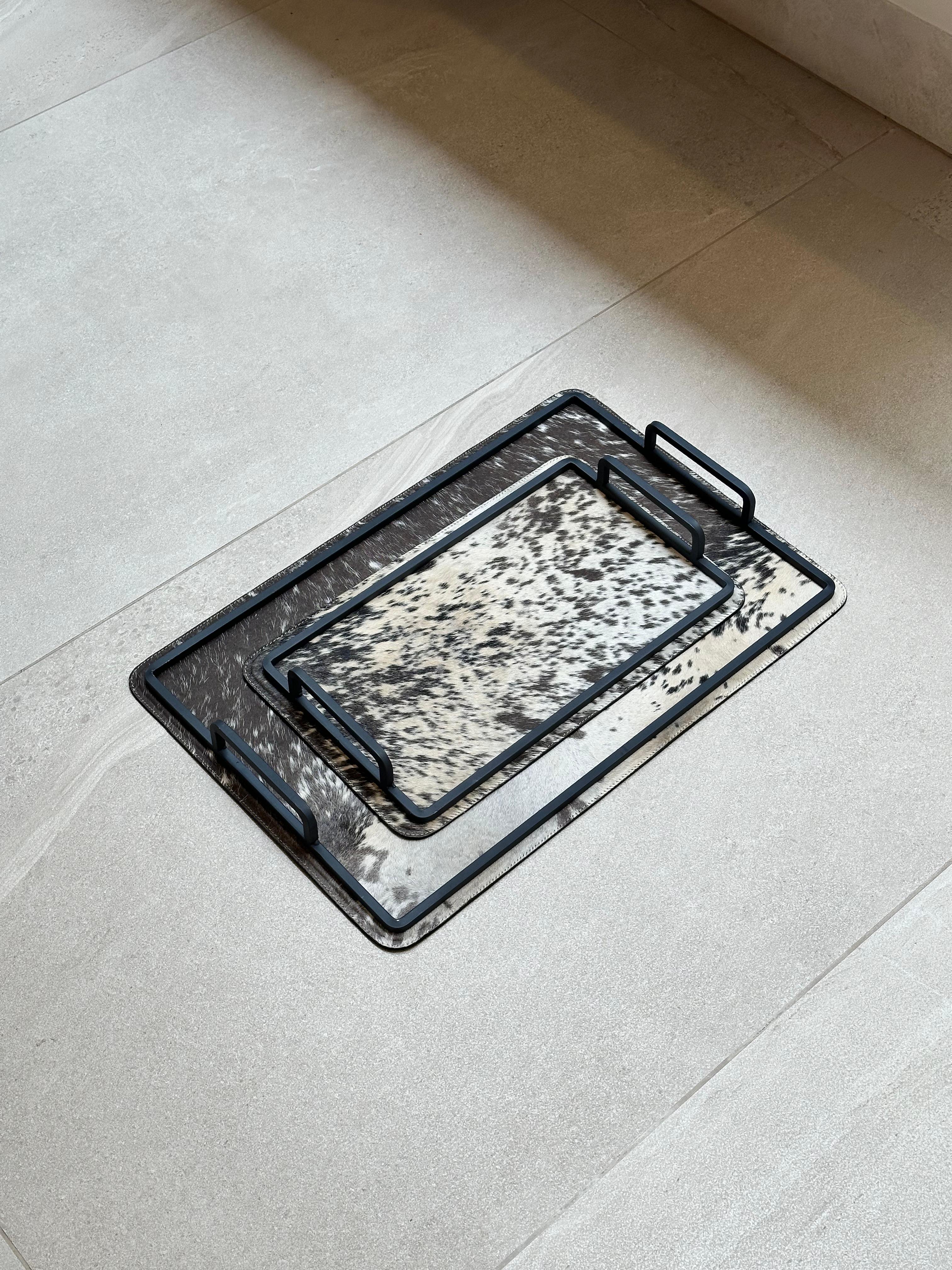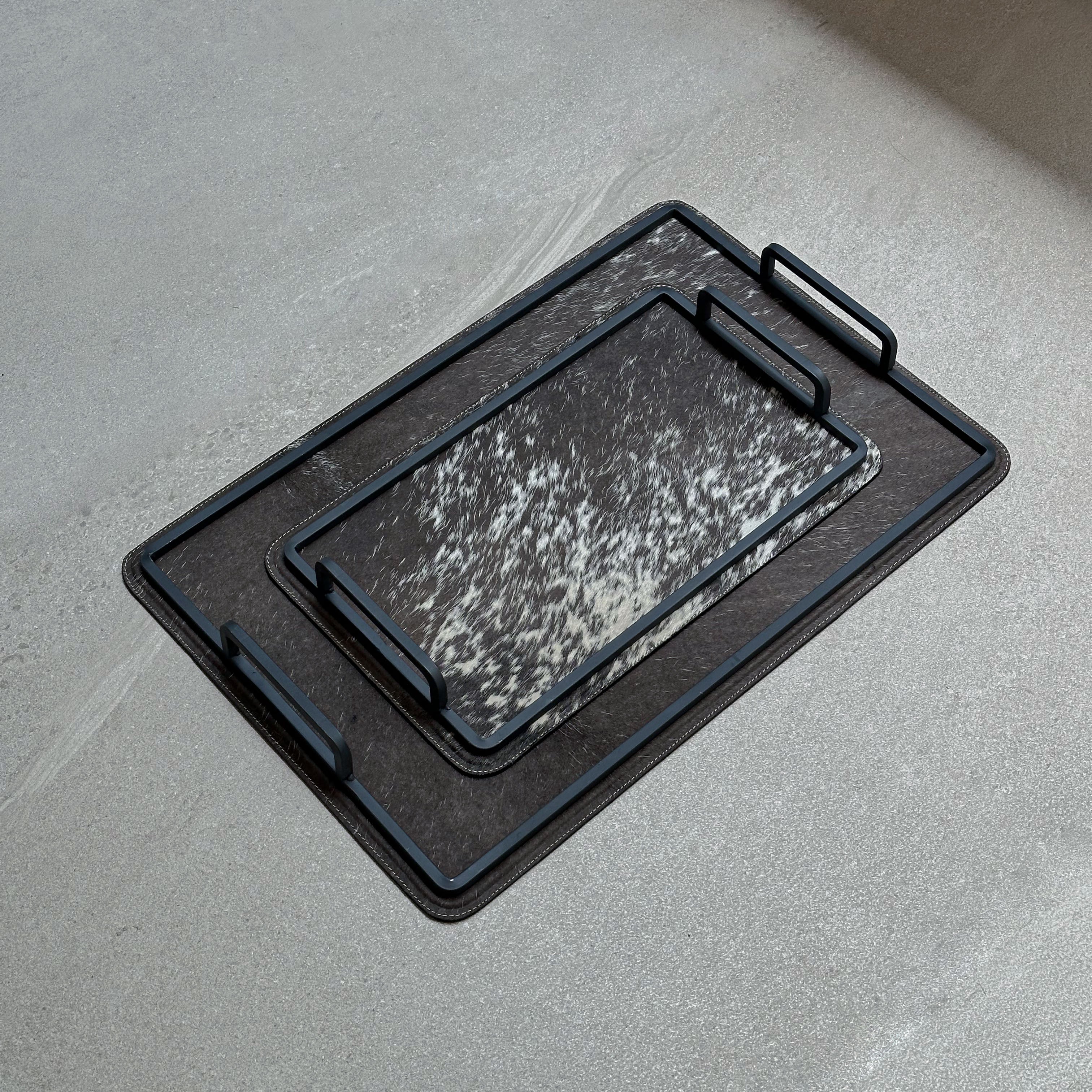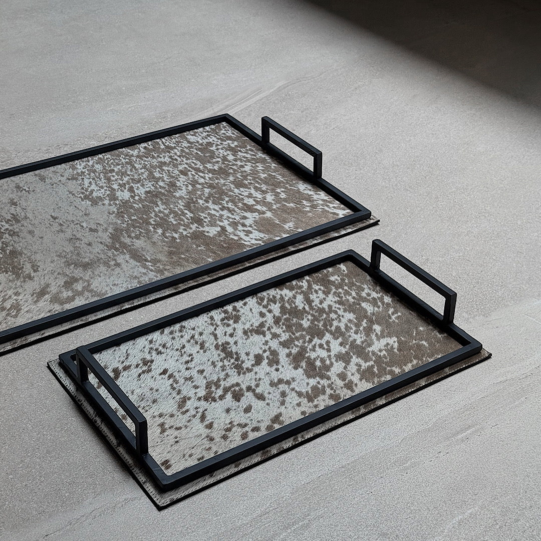 El set de charolas combina los tamaños chica y grande para lograr una composición armoniosa. Juntas, crean un juego visual único gracias al contraste de texturas y proporciones, aportando funcionalidad y estilo a cualquier espacio.