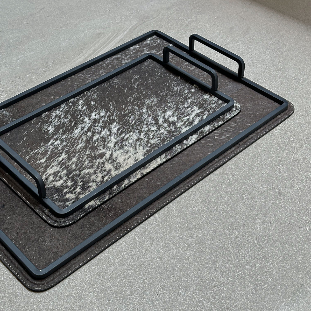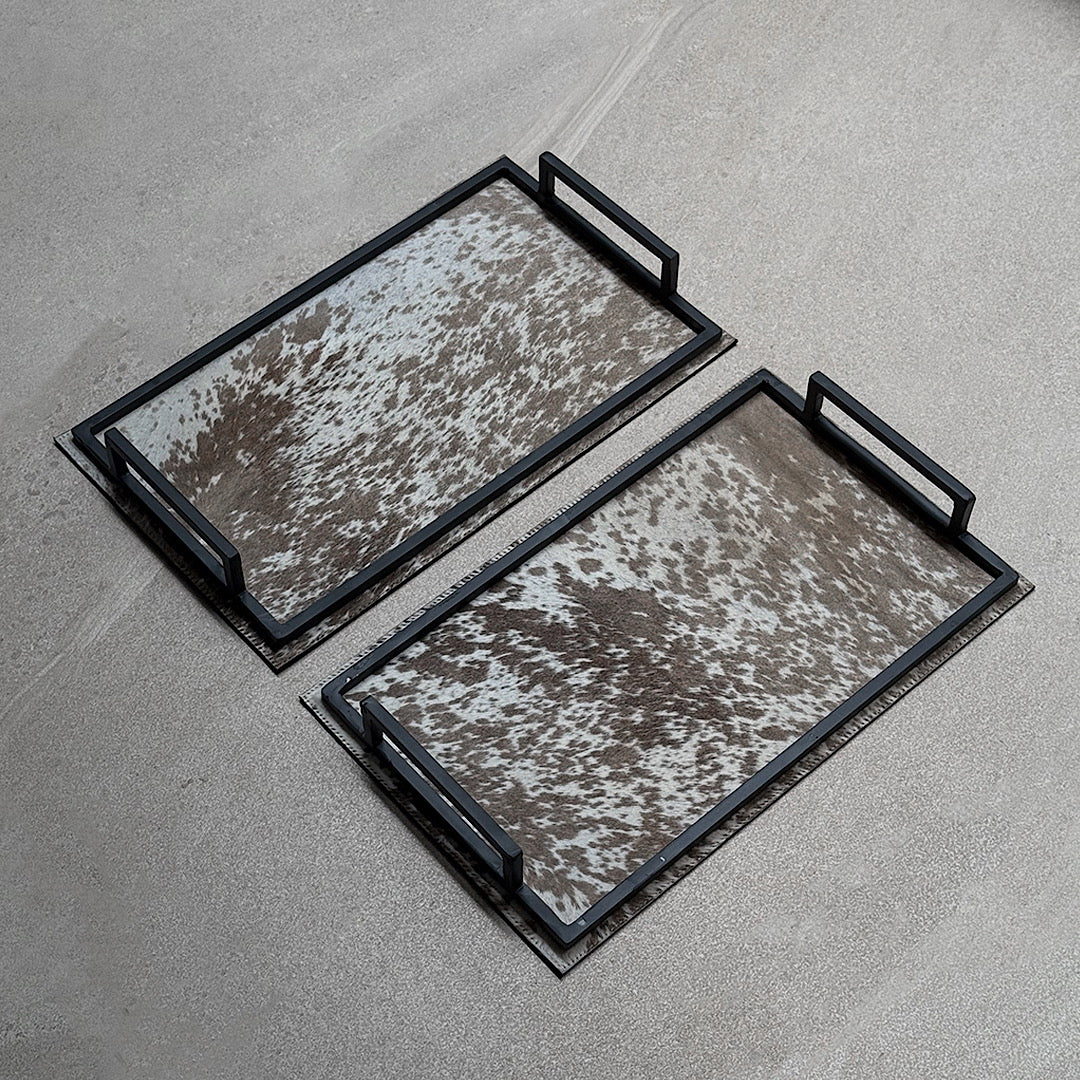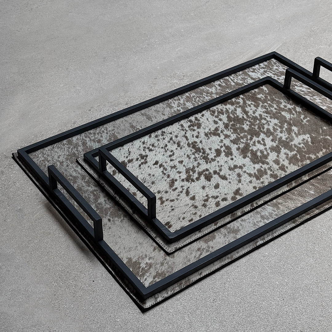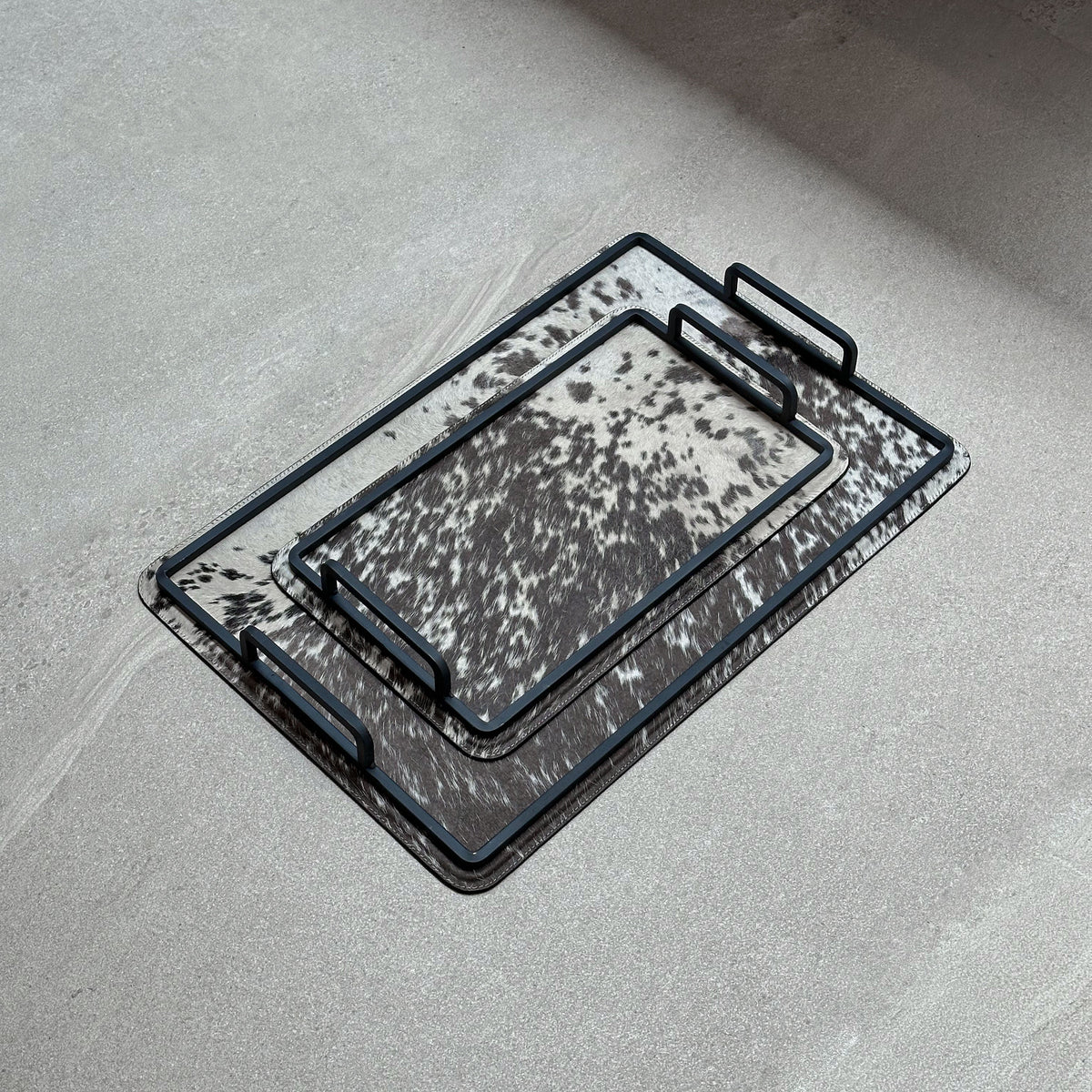 El set de charolas combina los tamaños chica y grande para lograr una composición armoniosa. Juntas, crean un juego visual único gracias al contraste de texturas y proporciones, aportando funcionalidad y estilo a cualquier espacio.