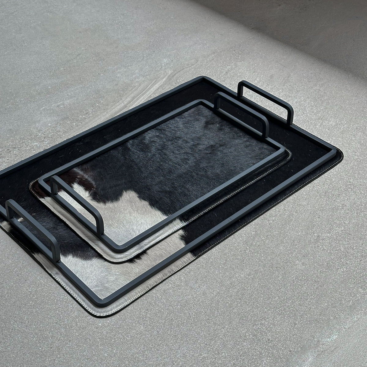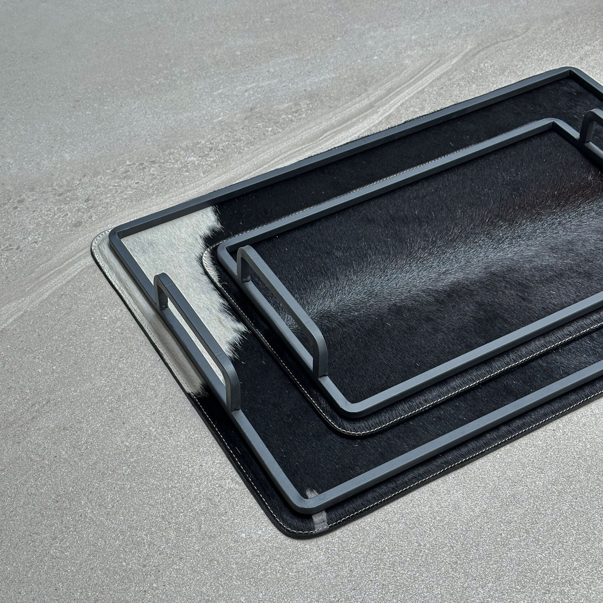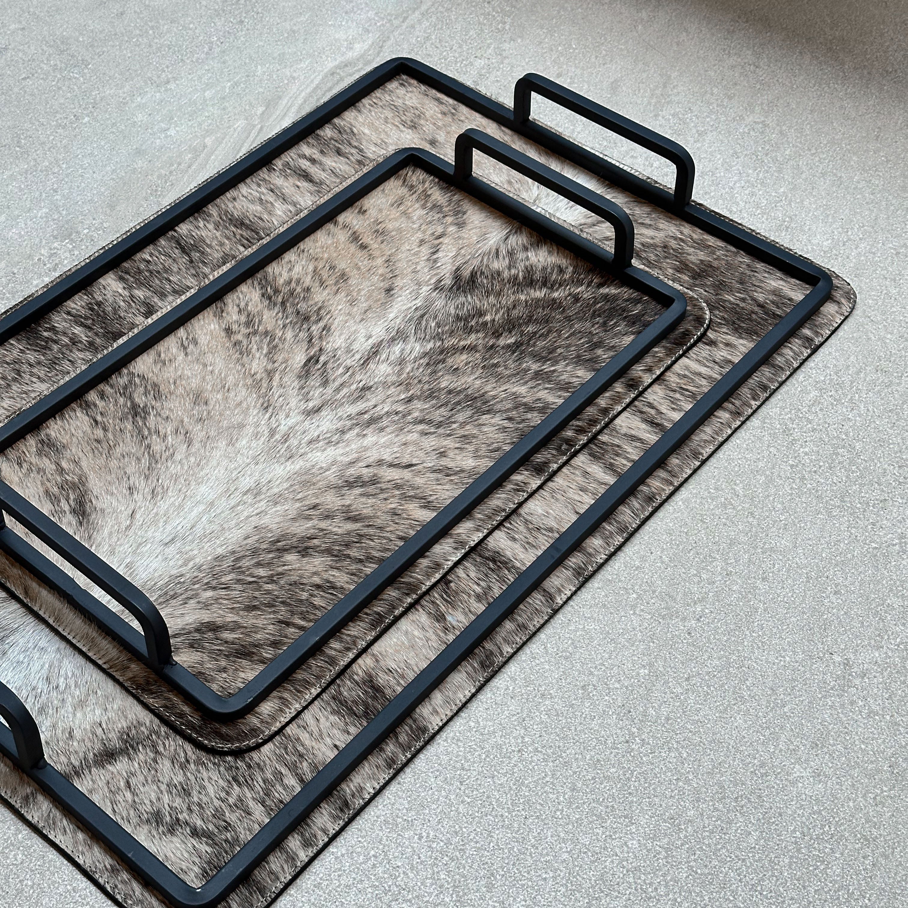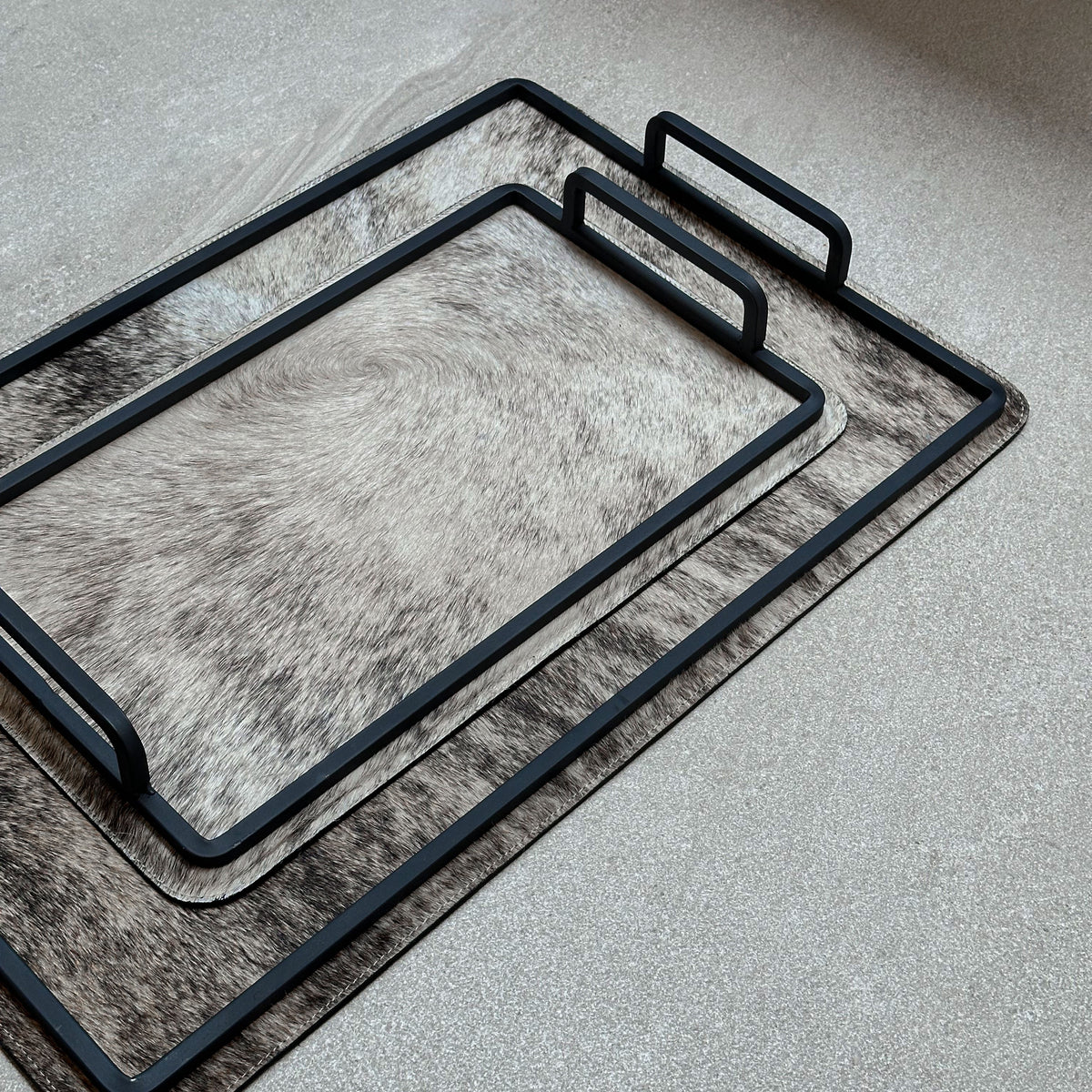 El set de charolas combina los tamaños chica y grande para lograr una composición armoniosa. Juntas, crean un juego visual único gracias al contraste de texturas y proporciones, aportando funcionalidad y estilo a cualquier espacio.
