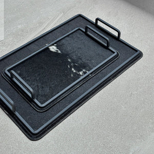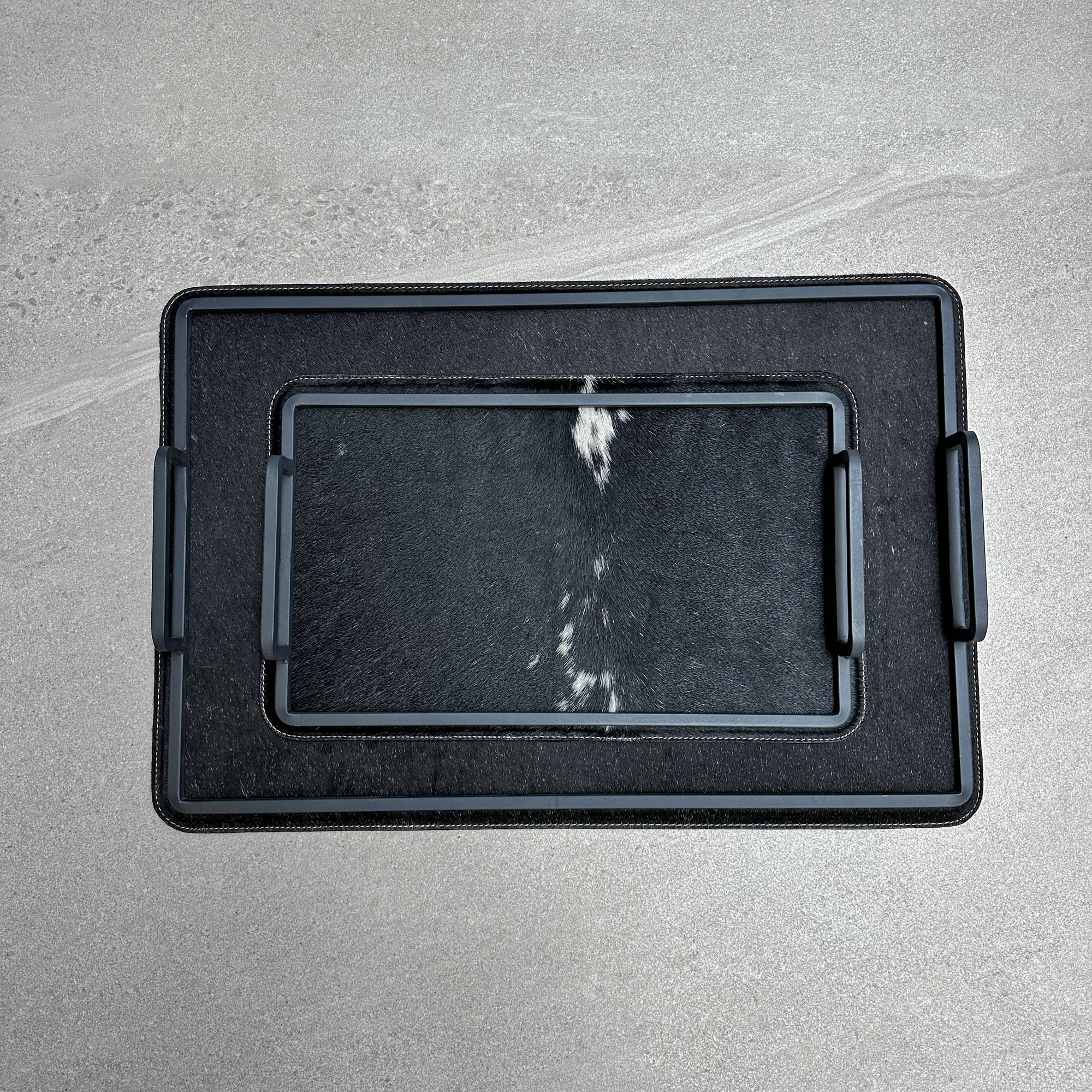 Set charolas piel con pelo - Negra con manchas blancas verticales
