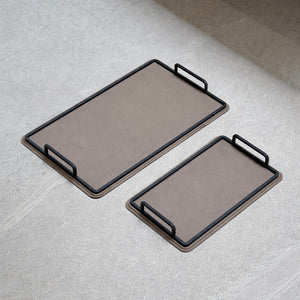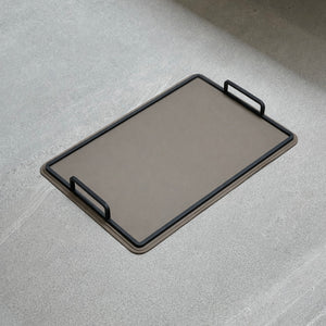 Charola de piel lisa grande - Beige